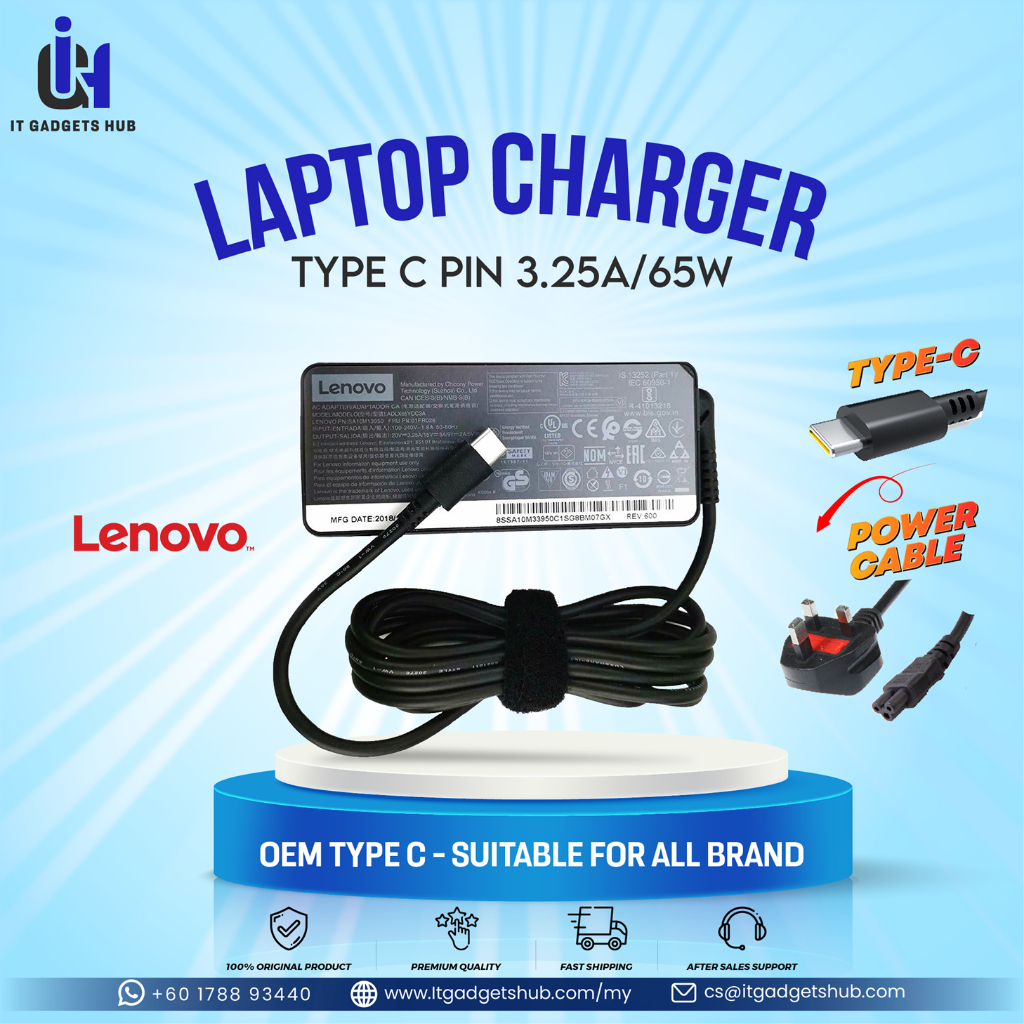 Laptop Type C Charger Laptop Lenovo Dell HP Pin Adapter 45W | 65W Ori & Oem (Best Quality & Lowest Price)