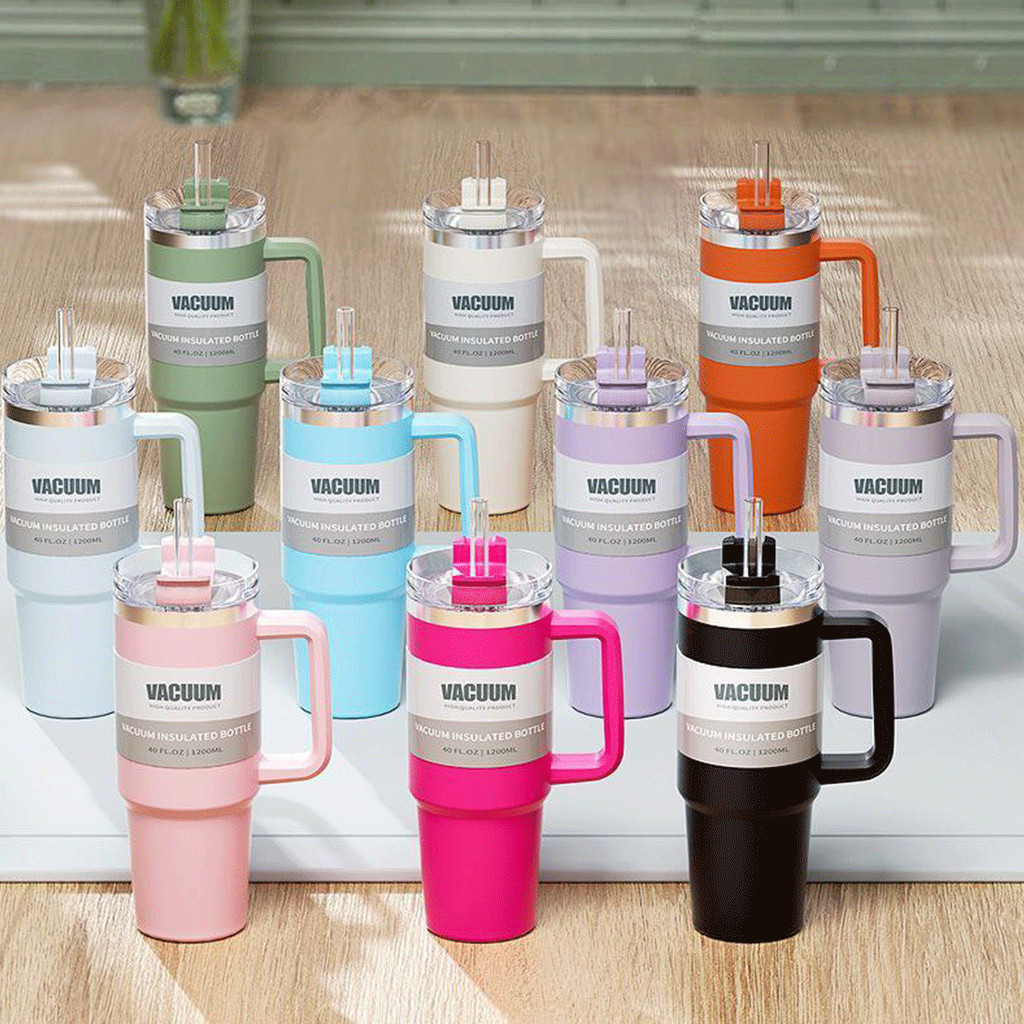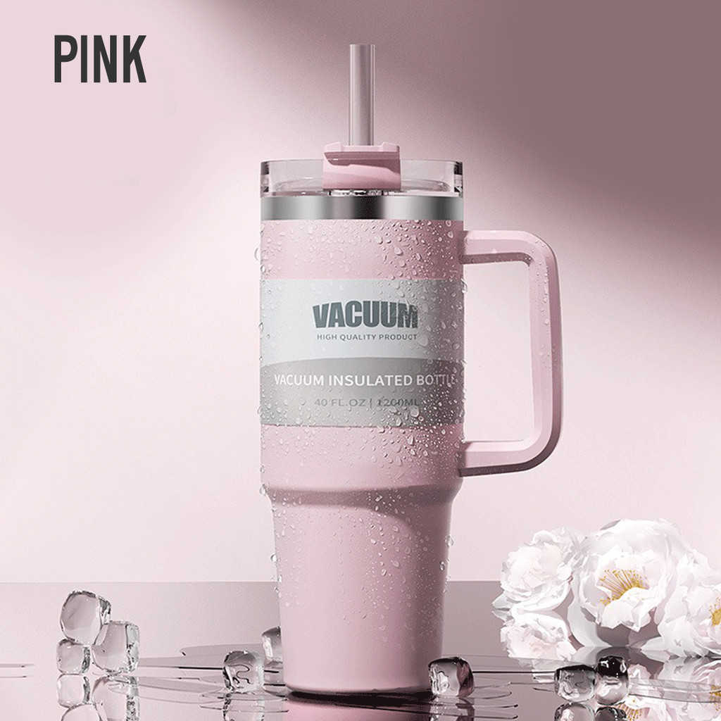 Large Capacity 1200ML Thermos Cup Vacuum Cup Tumbler Water Cup with Handle Straw 304 Stainless Steel Water Bottle