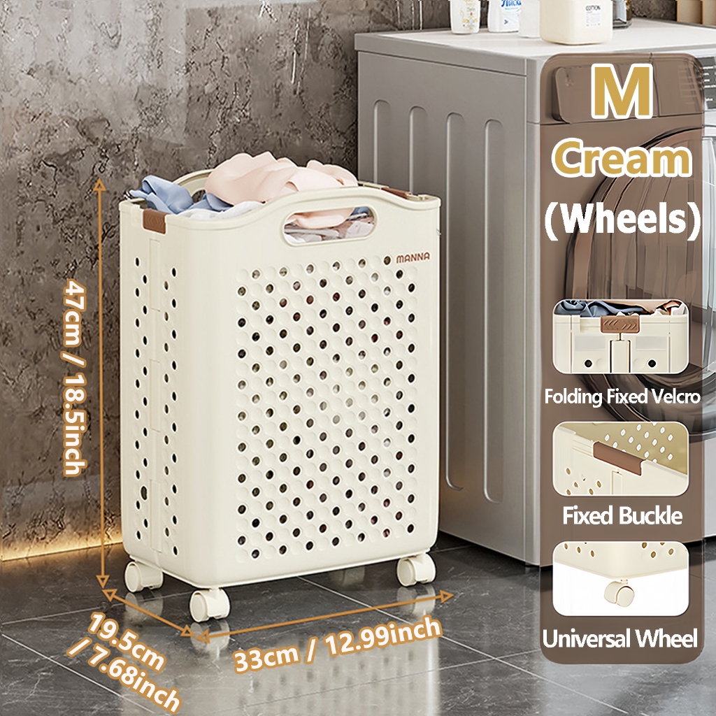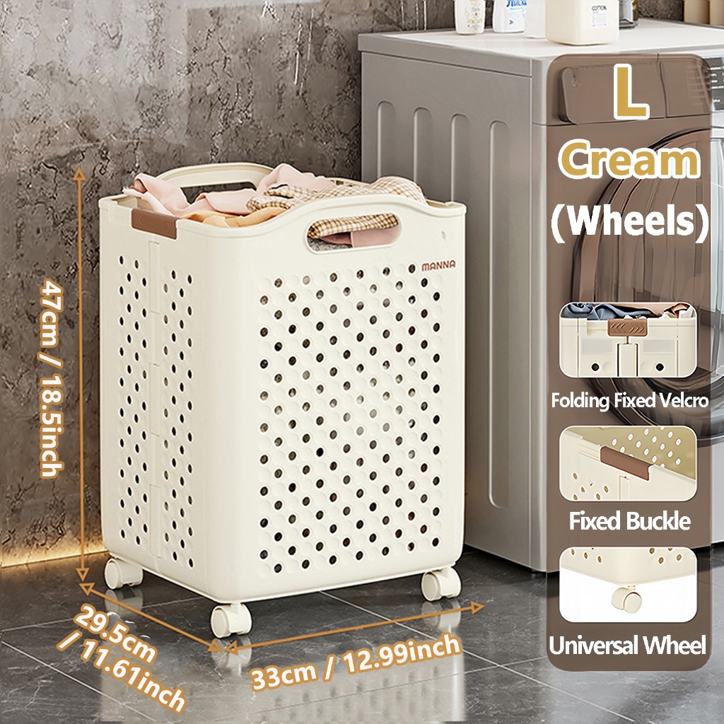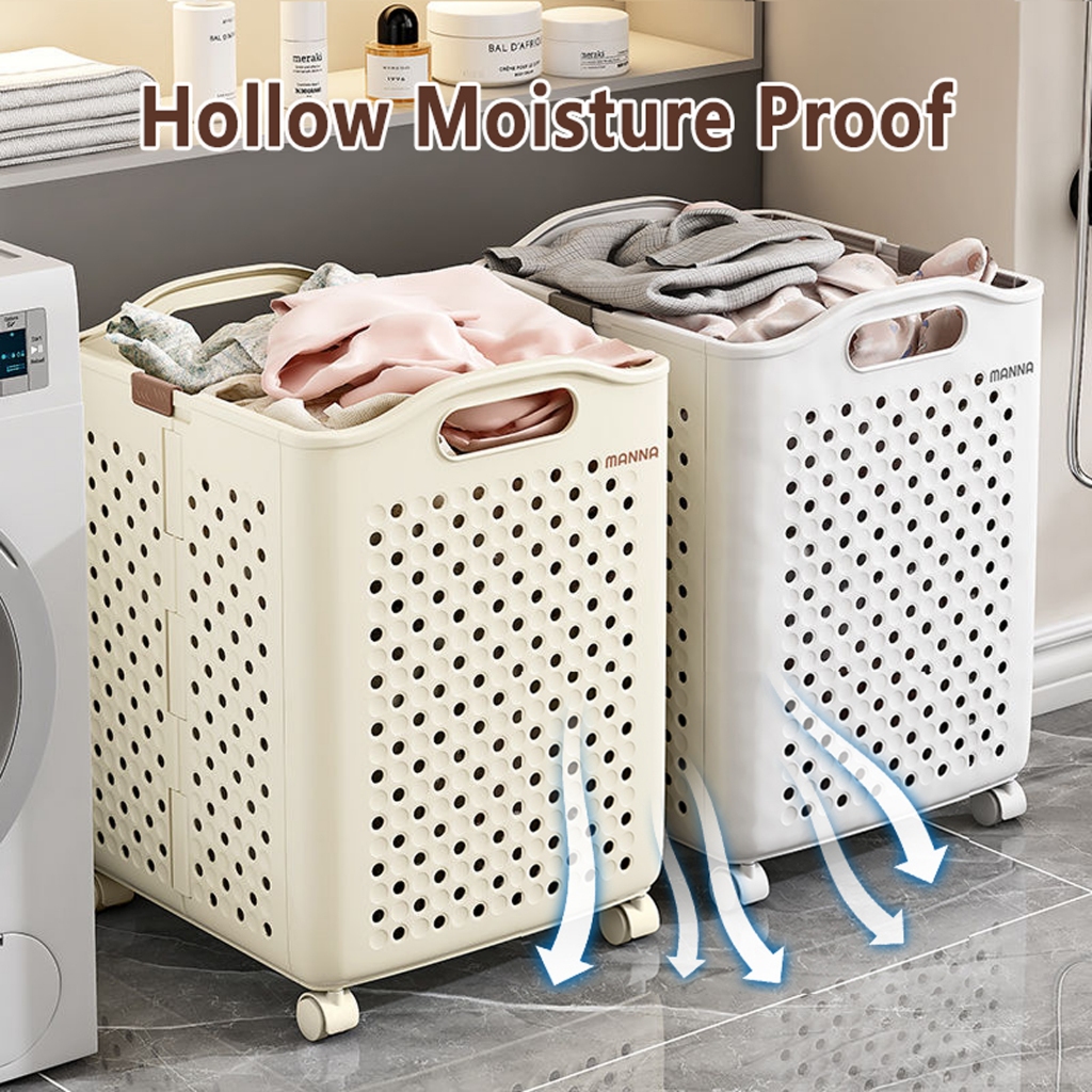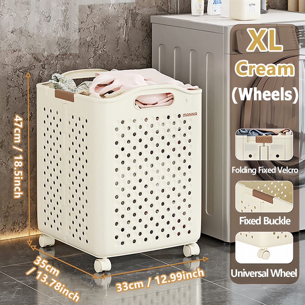 Large Foldable bakul baju Laundry Basket With Wheels and Handers Dirty Clothes Toy Storage Basket Organizer Local
