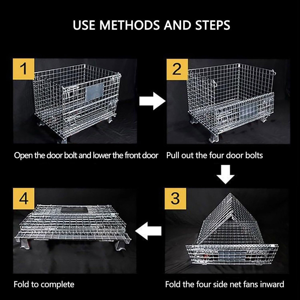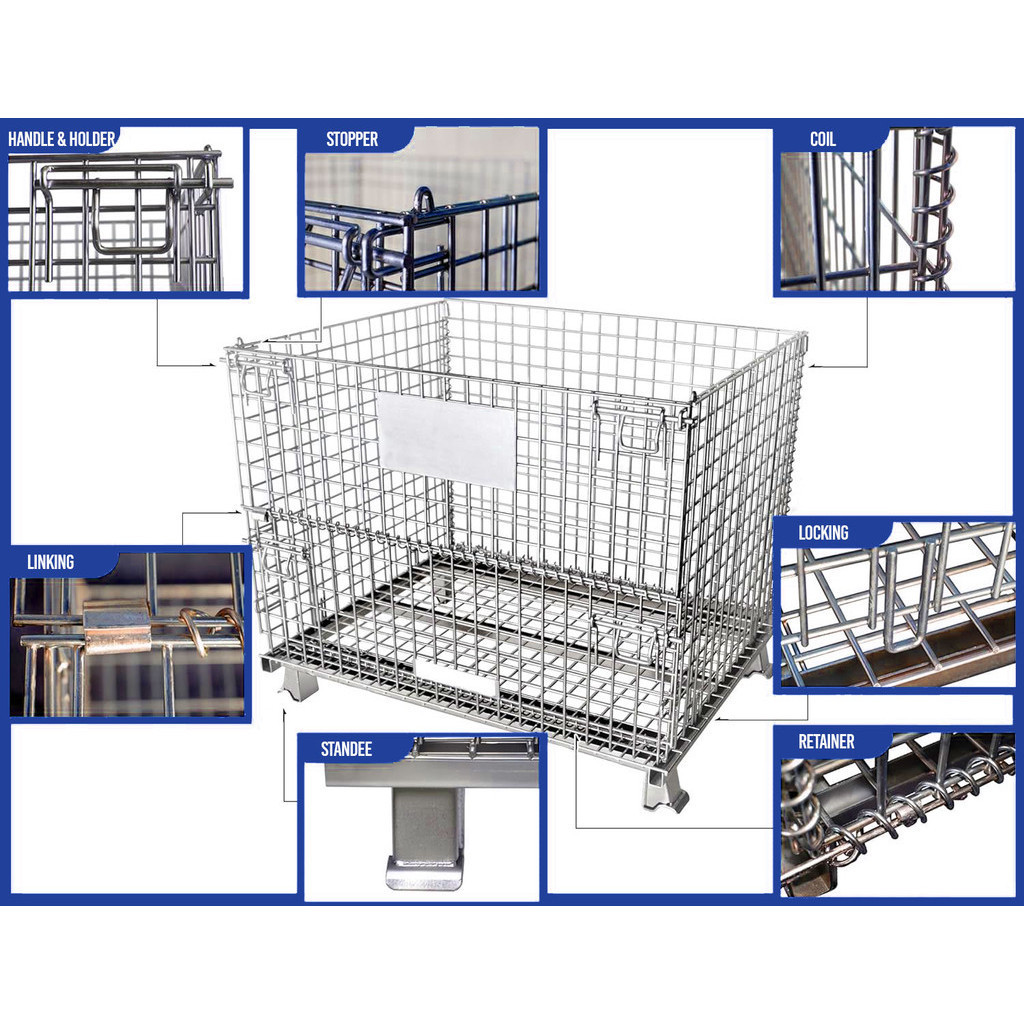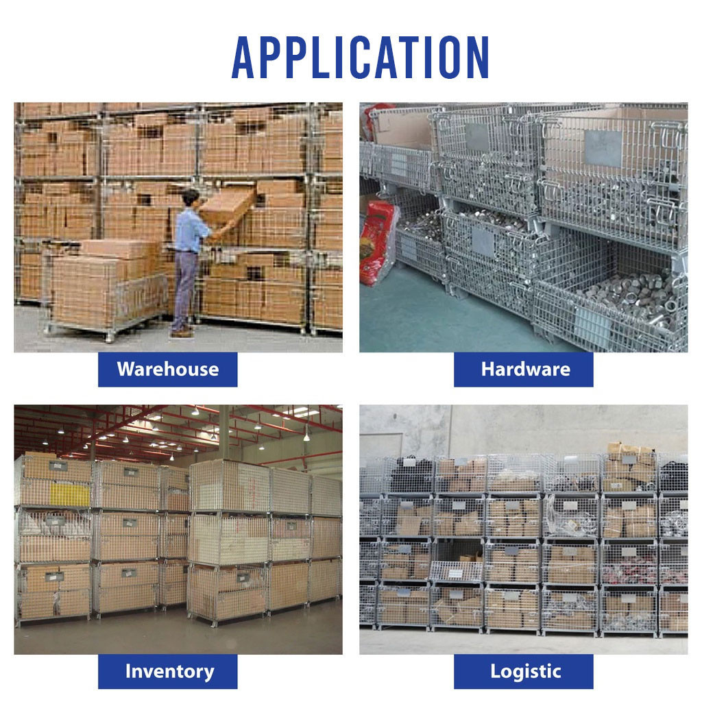 Large Heavy Duty Wire Mesh Pallet Trolley Container Storage Foldable Stackable Pallet Cage Rack Roller Warehouse Factory