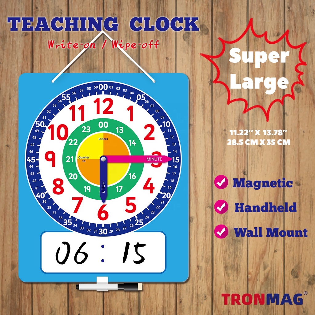 Large Magnetic Writable Dry Erase Learning Paper Clock for Kids Learning to Tell Time for Classrooms Homeschool Giftlive