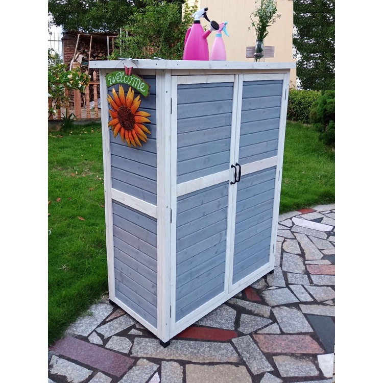 Large Size Outdoor Storage Solid Wood Cabinet Locker Courtyard Balcony Rain-proof Anti-corrosion Murah Kabinet Kayu