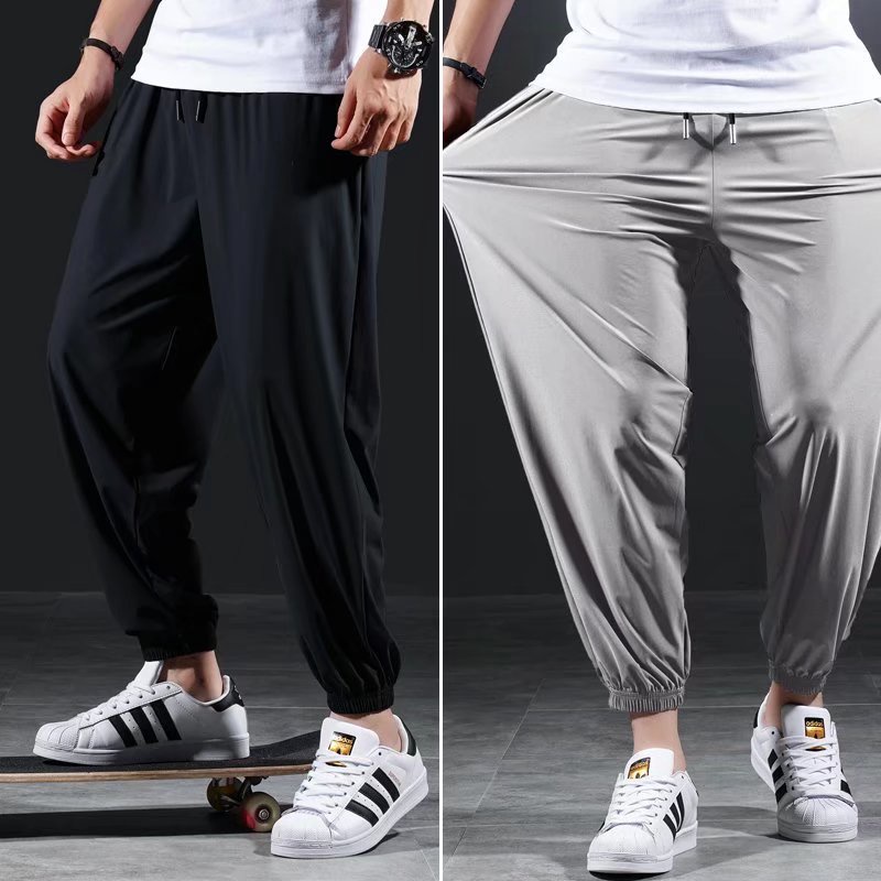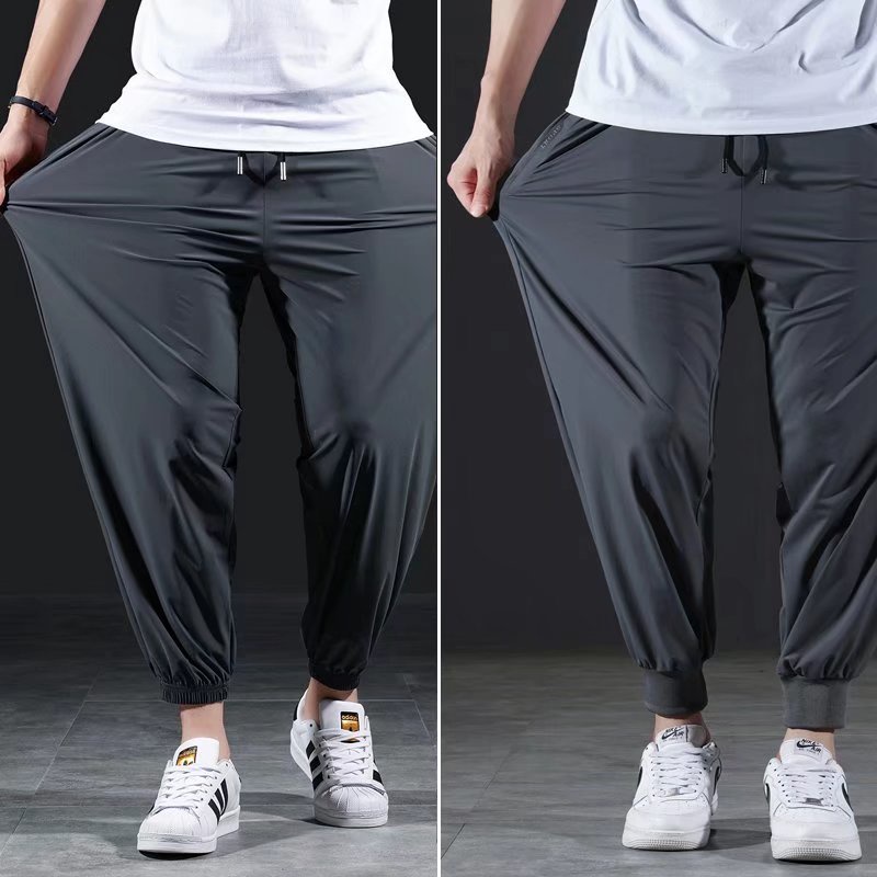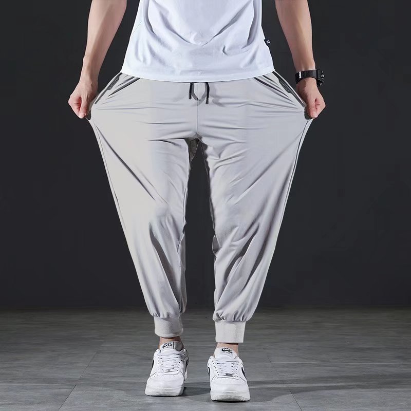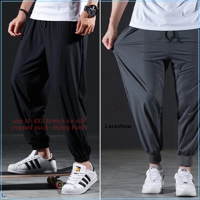 Large Size Pants size M-8XL Stretch ice silk cropped quick-drying Pants Men Summer Sports Pants Oversize Size Long Pants Jogging Pant