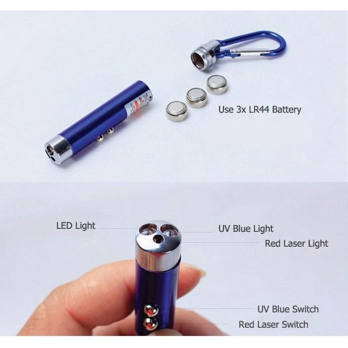 Laser + UV Money Detector + LED Touch Light 3 in 1 Pointer with Key Chain