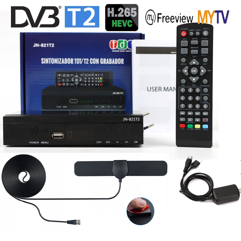 Latest TDT Decoder Full Set With Antenna HD DVB-T2 Hevc/H265 10Bit Code DigitalTv Receiver Fully Compatilbe With Singapore Malaysia Thailand Vietnam