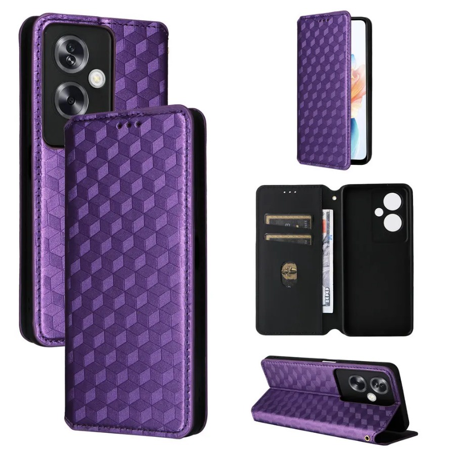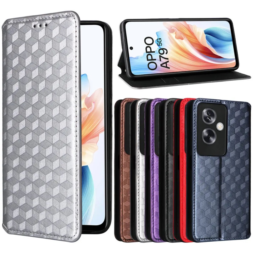 Lattice Magnetic Leather Flip Cover for OPPO A79 2023 CPH2557 5G Phone Case Stand Holder Card Slot Wallet Casing hp OPPOA79 OPO A 79 CPH 2557 A2 Shockproof Bumper