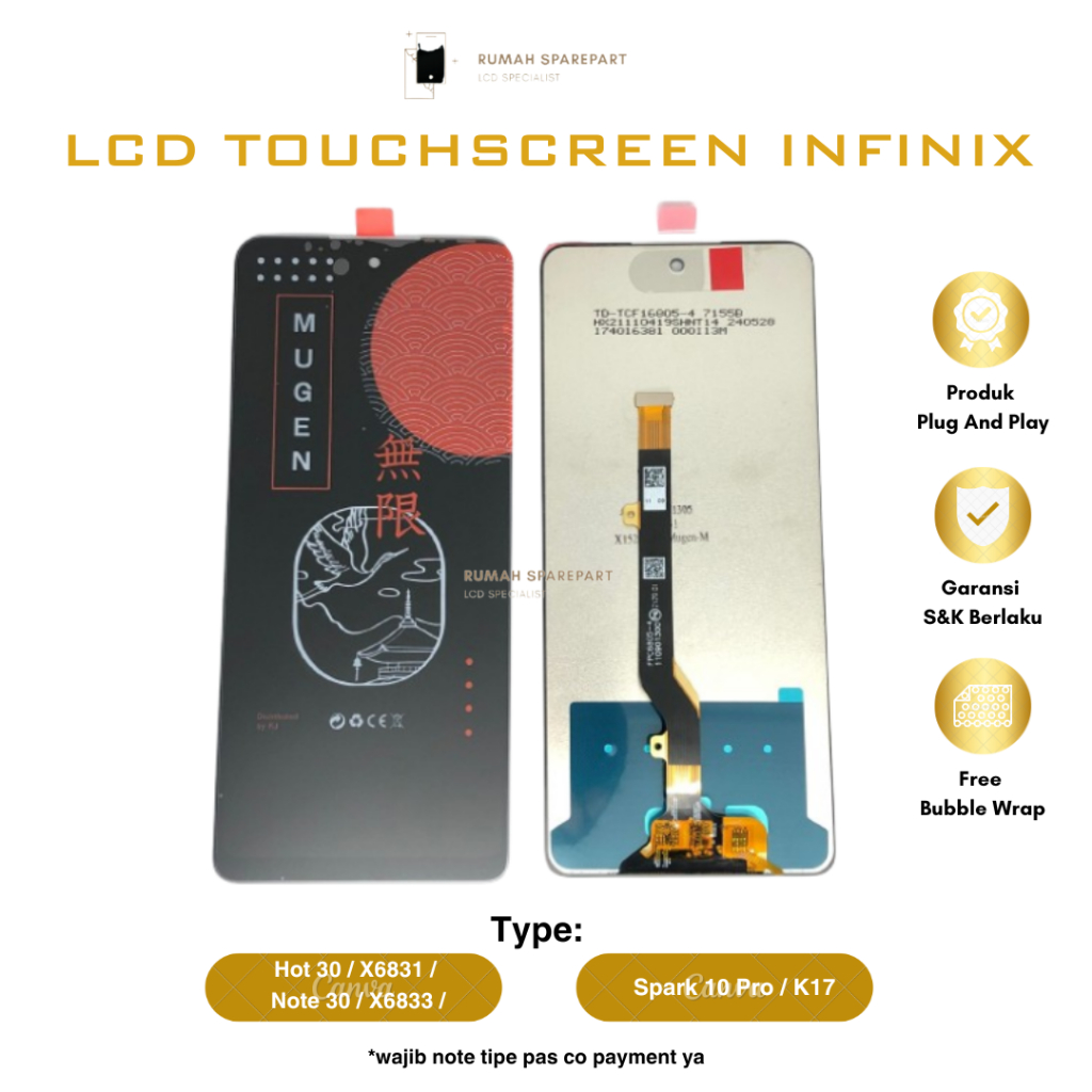 LCD + Touchscreen Infinix Hot 30 / X6831 / Note 30 / X6833 Spark 10 Pro/ K17/ - Original Fullset