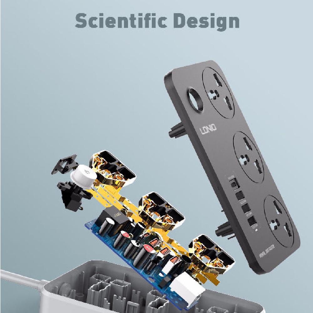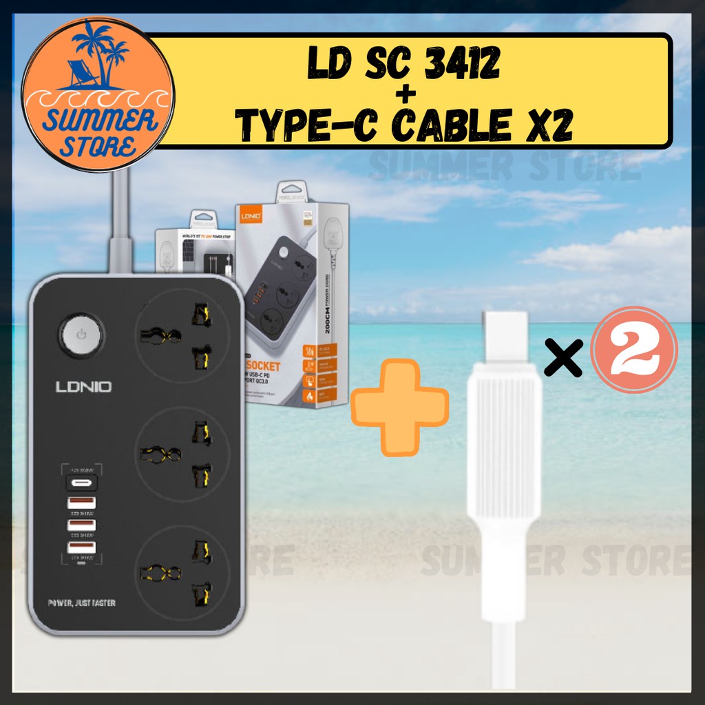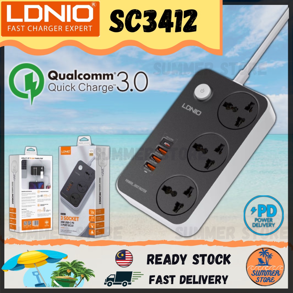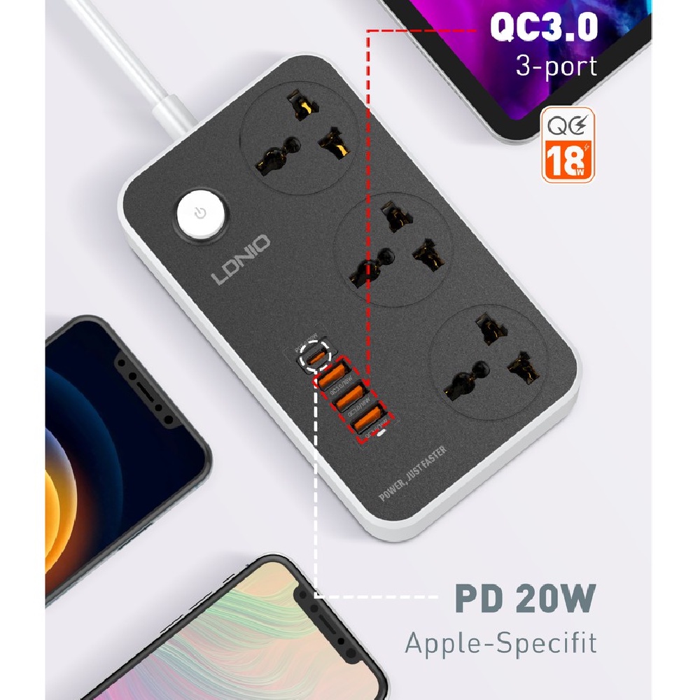 Ldnio SC3412 Extension Plug Power Strip 3 Universal Socket 38W PD20W Power Strip 2-Meter Wall Extension Plug Cord LONIO
