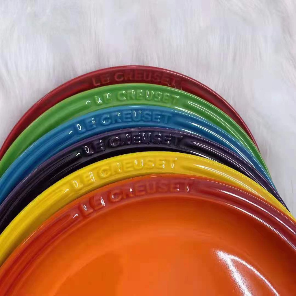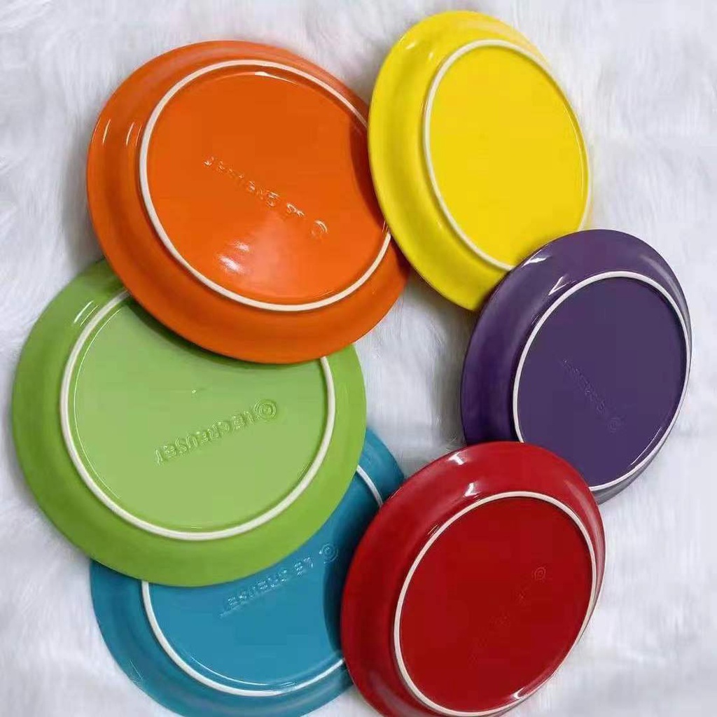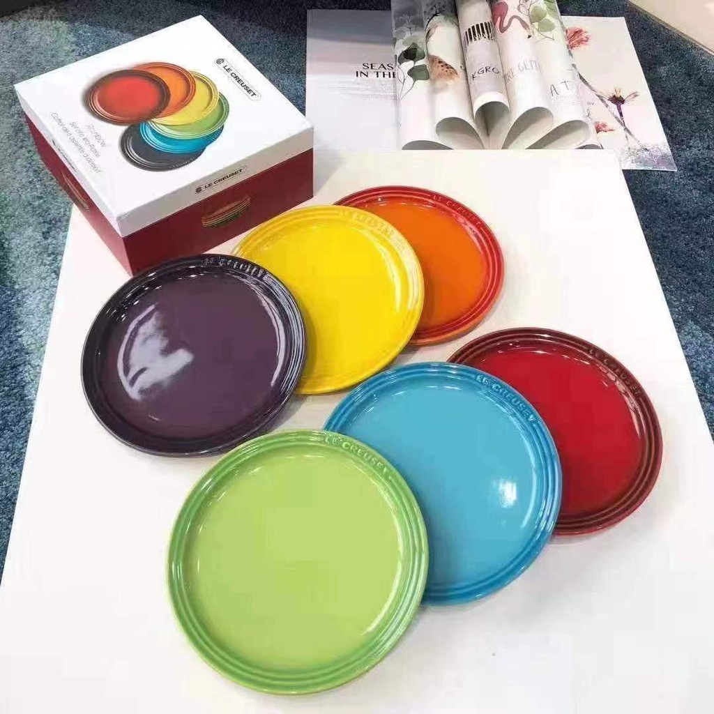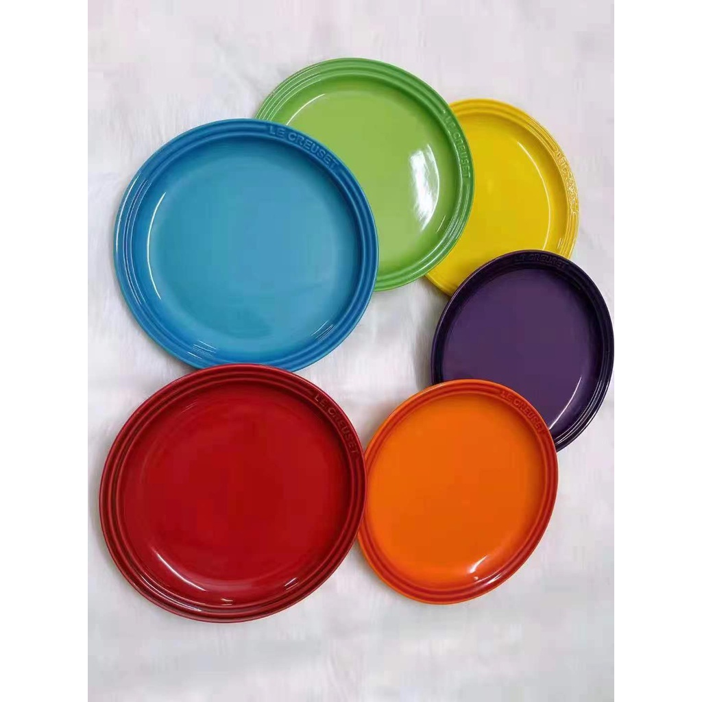 Le Creus French Ceramic Round Dish Plate 23cm Fruit Plate 18 Steak Plate Gradient Color Plate Color Box Rainbow Color Gift Set