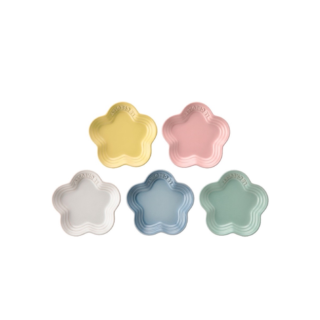Le Creuset Stoneware Small Flower Plate - Chiffon Pink/White/Coastal Blue/Elysees Yellow & Peppermint B (Set of 5)