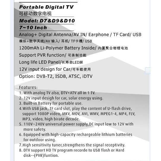 Leadstar 7 Inch Portable Mini tv With Dvb-T2 DTV Analog TV USB Playback DOLBY All In One