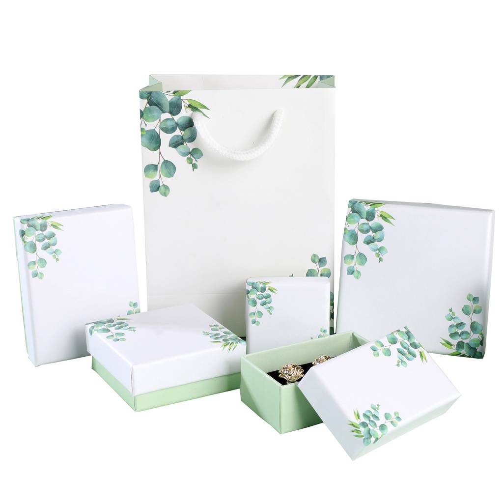 Leaf Print Paper Box High Quality Gift Box with Sponge Cusion Jewelry Storage Paperboard Boxes for Necklace Earring Rings