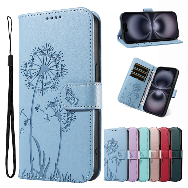 Leather Flip Case for Xiaomi Redmi Note 14 13 12T 12S 12 K50i Turbo Pro Plus 4G 5G Dandelion Embossing Card Holder Stand Wallet Cover
