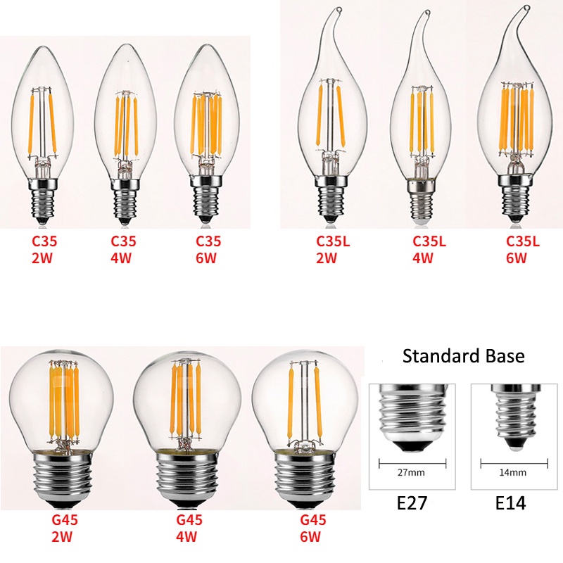 Led Bulb Spotlight 2W/4W/6W E27/E14 Cob /Flame Tip Candle bulb G45 Filament Glass Lamp