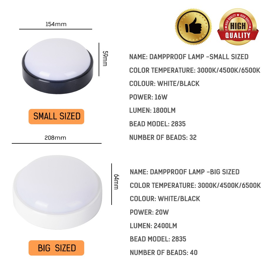 Led Ceiling Light Round Waterproof Moisture-Proof Bathroom Essential Light 110V 220V Full Voltage Super Bright White Light 16W 20W Household Bathroom Bedroom Living Room Ceiling Light