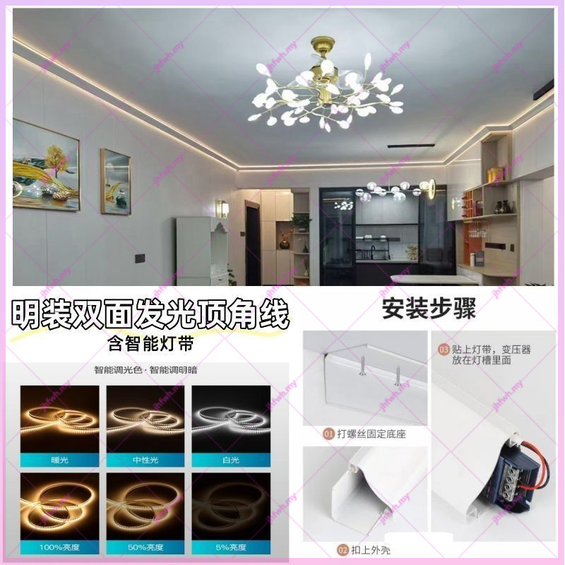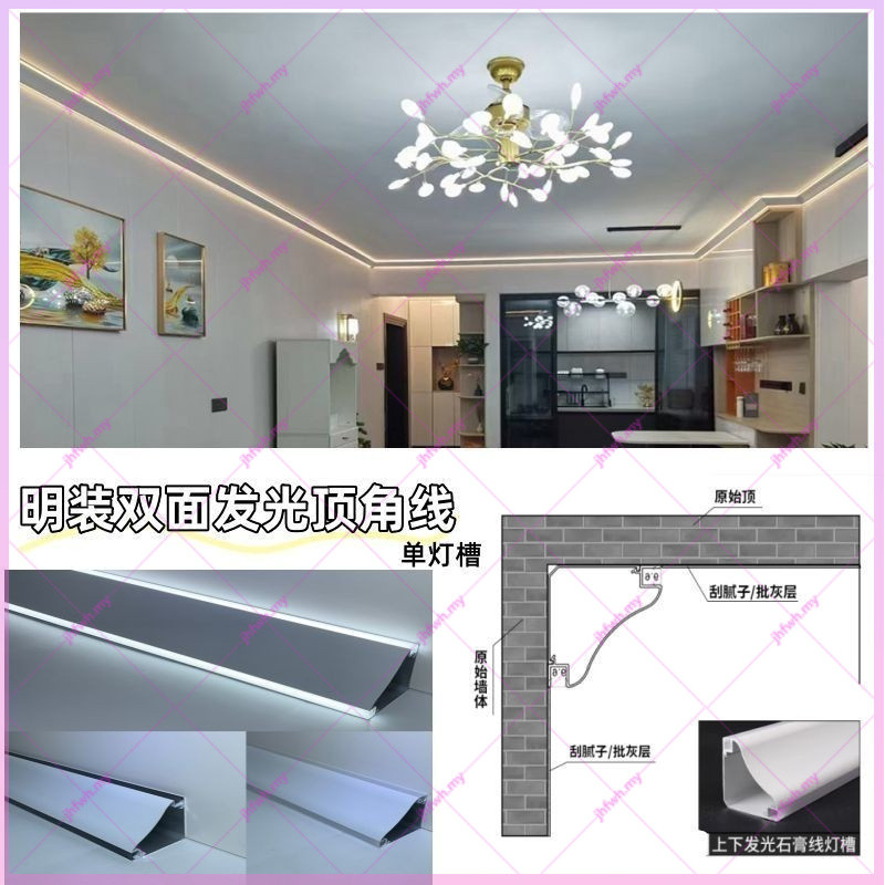Led Double-Sided Luminous Crown Moulding Light Surface-Mounted Ceiling-Free Slotted-Free Aluminum Alloy Lamp Slot Corner Corner Corner Line Light