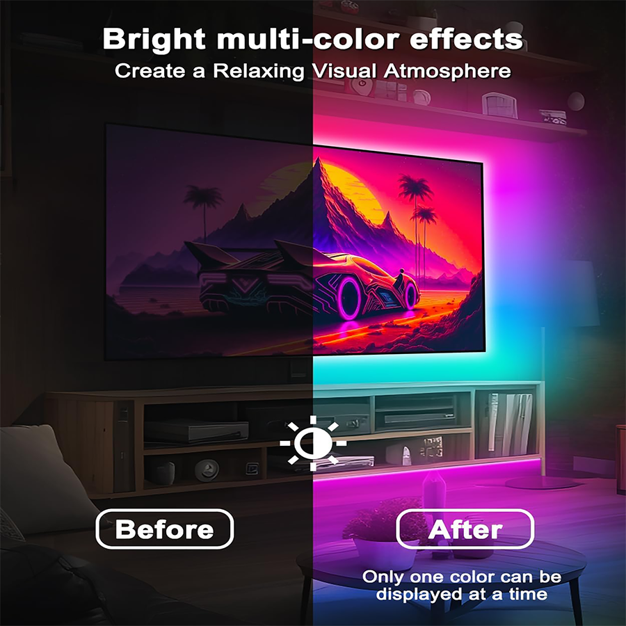 LED Room Light 24Key, Sync Music Bluetooth/Remote Control RGB 3535/5050 Strip Light for TV Backlight Home Decoration