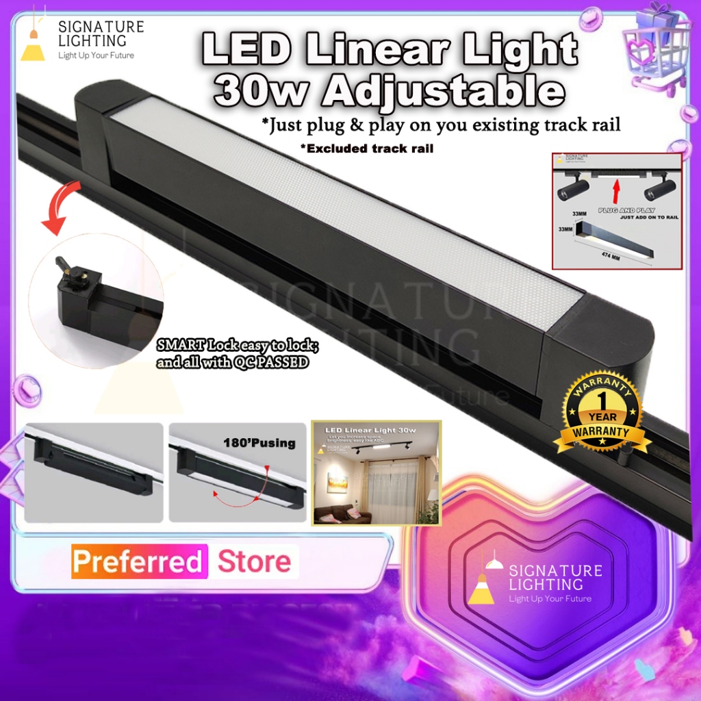 Led Linear Track Light LED 30W Just Plug & Play On Old Track Aluminium Casing / Lampu Linear Led Senang Pasang