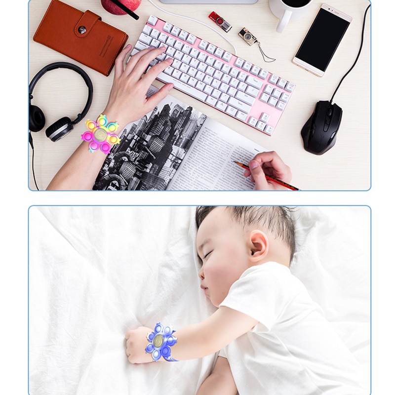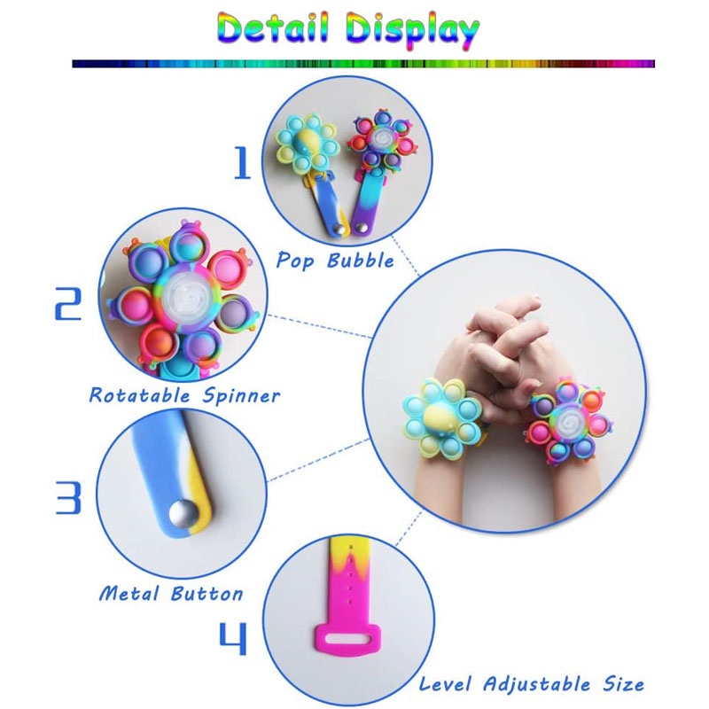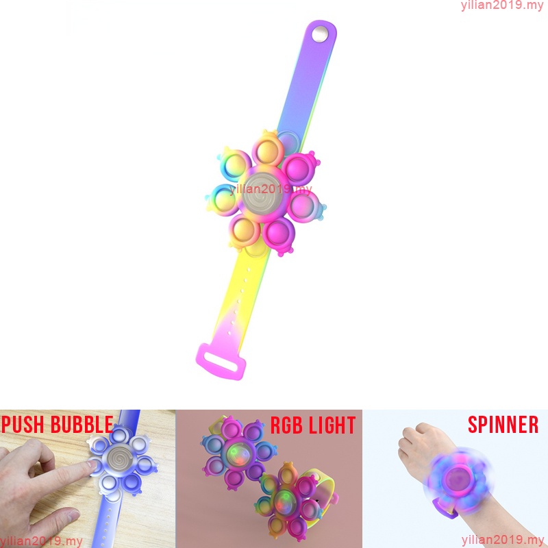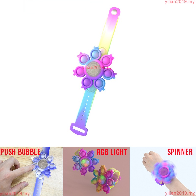 Led Pop It Fidget Spinner Toys Luminous Fidget Bracelet Anti Stress Wristband Creative Light Up Rotating Silicone Bracelets Kawaii Puzzle Hand Finger Push Bubble Toys for Boys Girls Kids Gifts