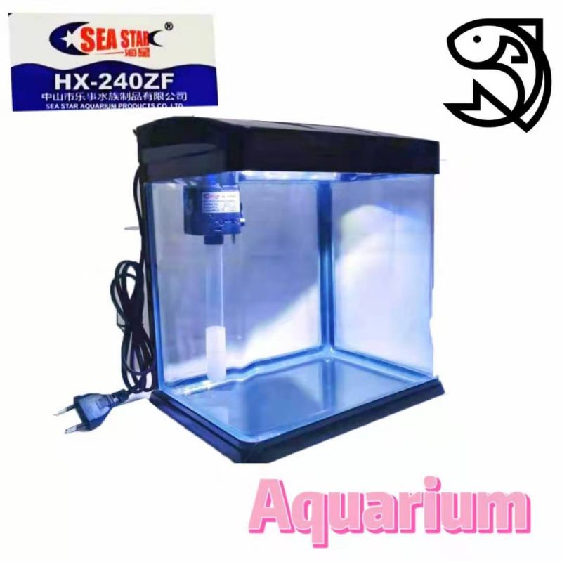 Led Pump Filter Sea Star Super Aquarium SET 12L (HX-240F)-Glass Aquarium (black/white)
