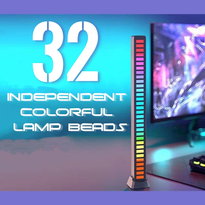 Led RGB Rhythm Music Lamp Voice-Activated Pickup Sound Control Colorful Ambient Light 32 Bit Music Level Indicator Car