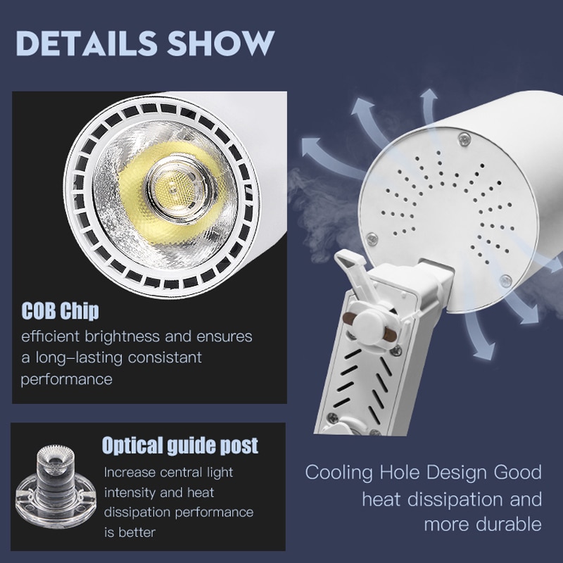 Led Track Light 220V COB Track Lights Rail Lamp 12W 20W 30W 40W Spot Lights Kitchen Fixture For Home Store Foldable Downlight Track Lamp Spotlight Ceiling Light