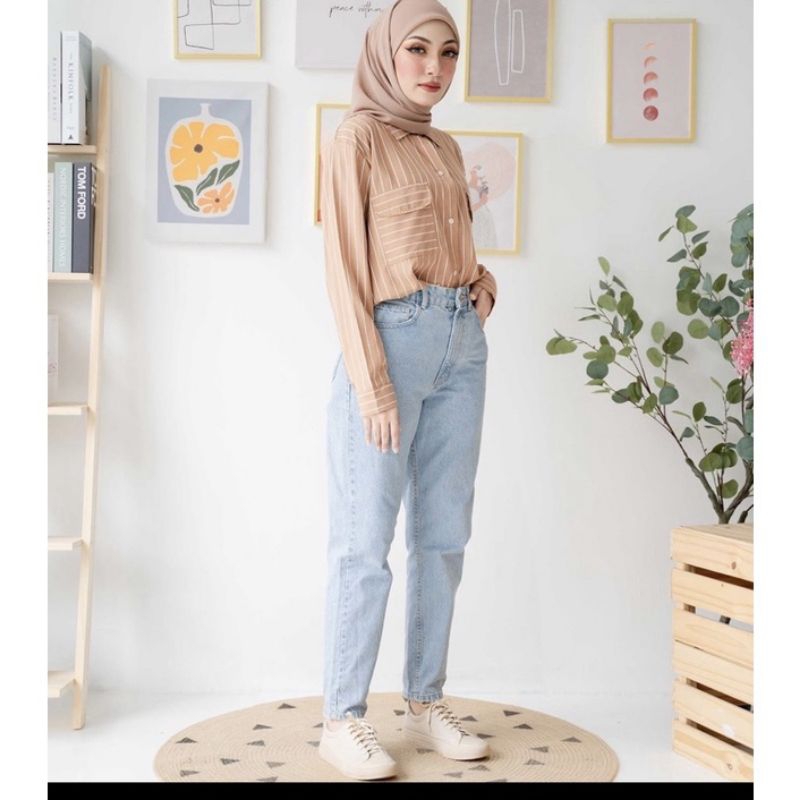 Ledis mom jeans / boyfriend jeans denim ready Stock