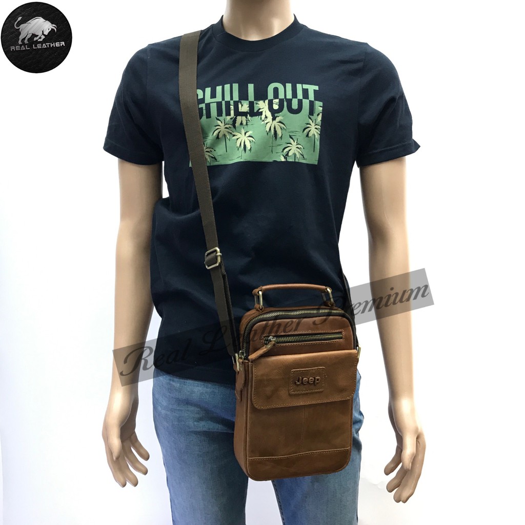 Lee Jeep Leather Sling Bag Kulit Genuine Leather Shoulder Bag Cross Body Leather Bag Messenger Bags Beg Kulit