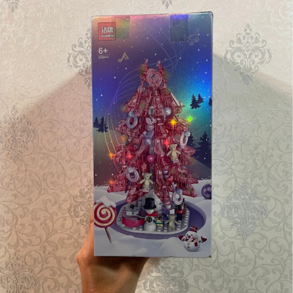 Lego Building Blocks Christmas Tree Crystal Music Box (Pink) With Snow Sound Light 629 Pieces.