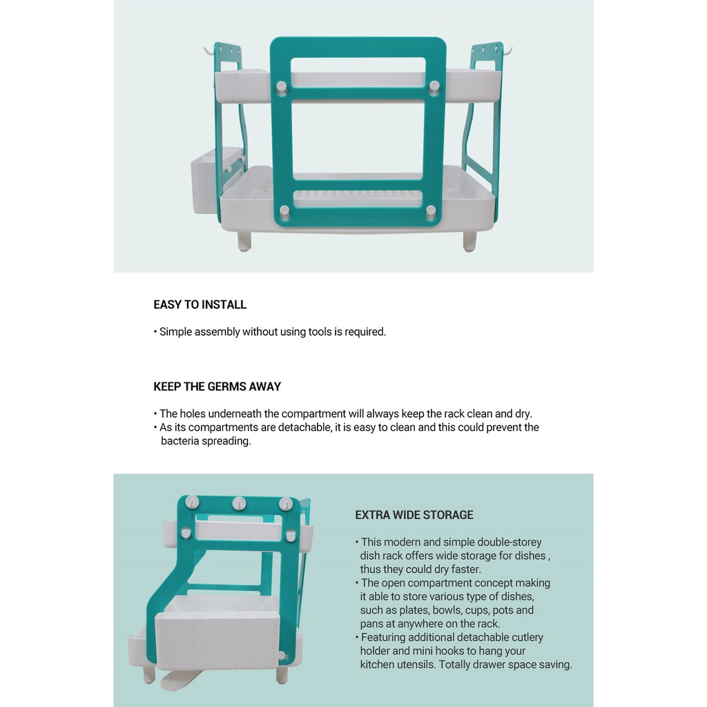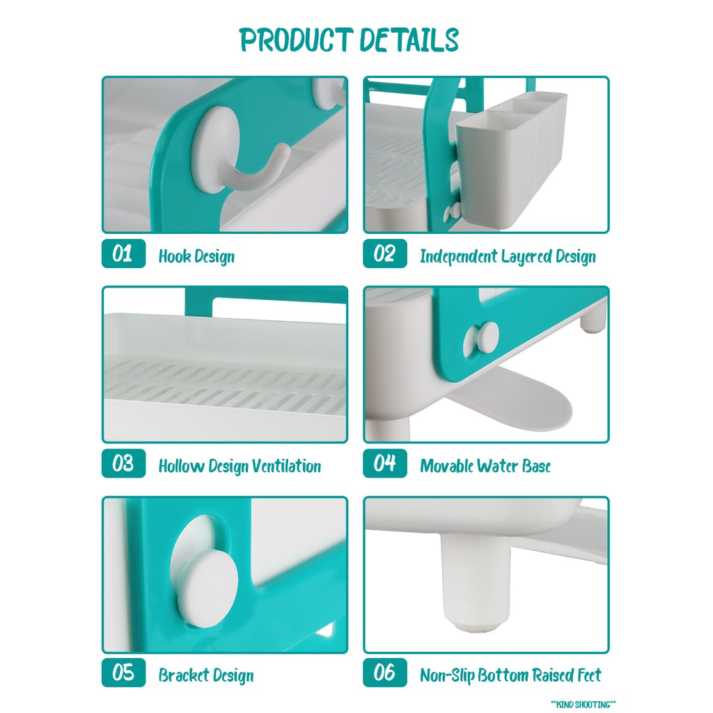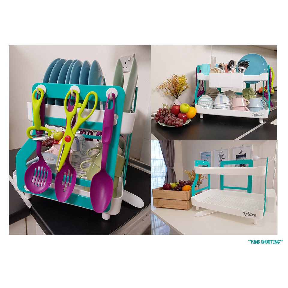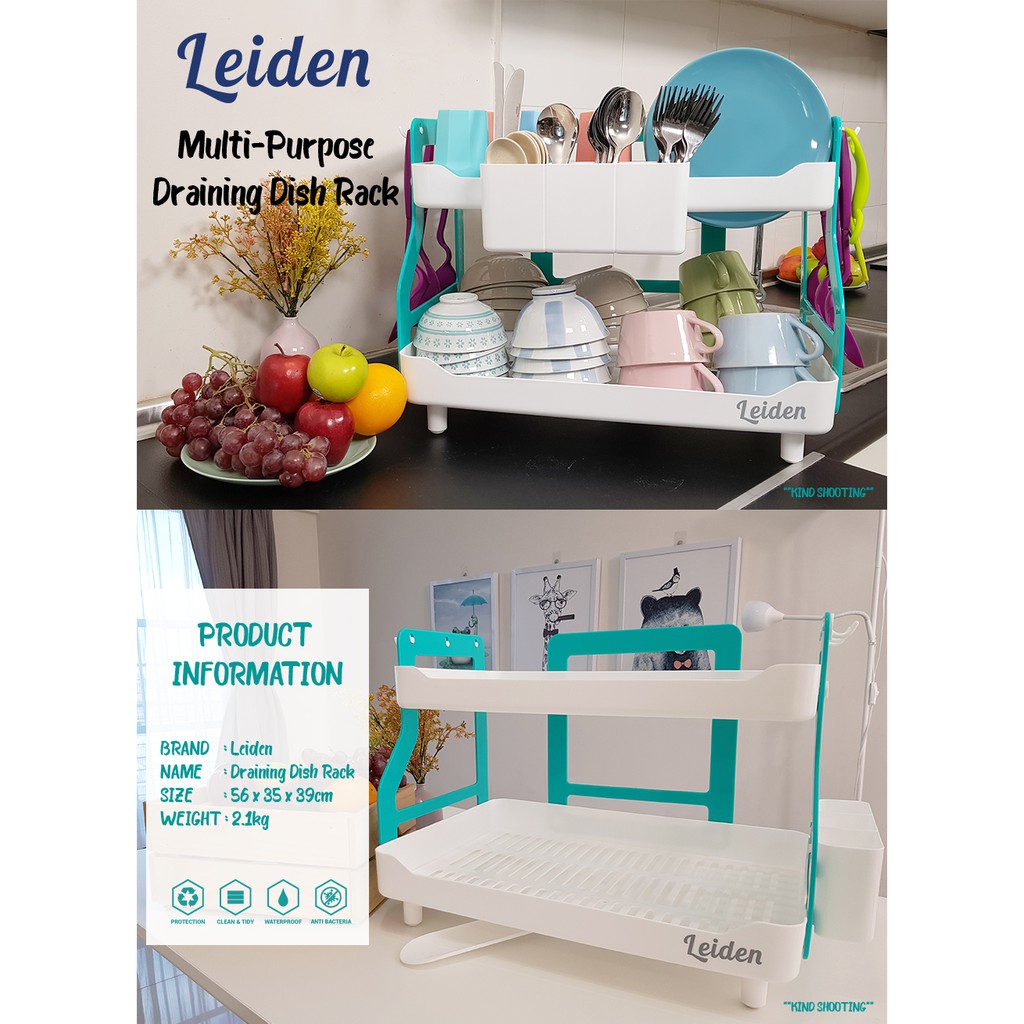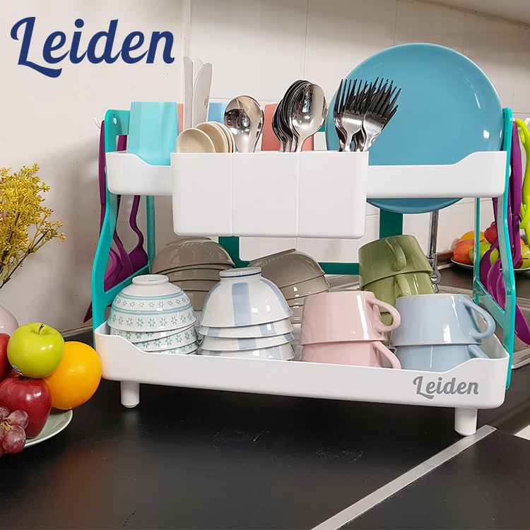 Leiden 2 Layer Draining Dish Rak Multipurpose Polypropylene Kitchen Penyimpanan Shelf DD2