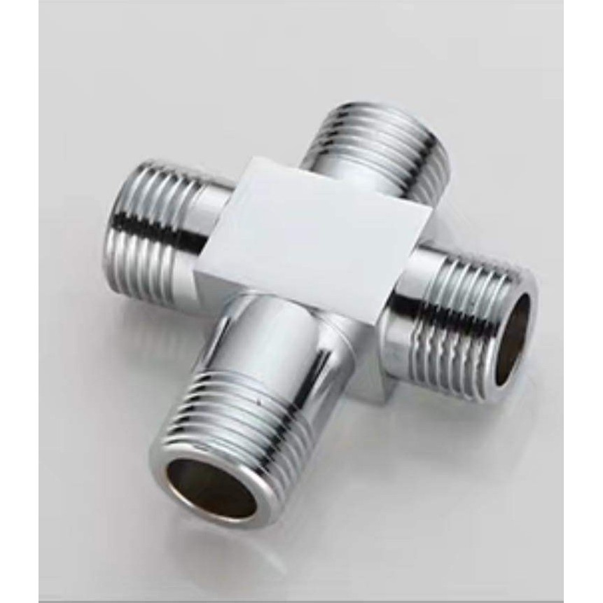Lengthened Stainless Steel Four Way Water Connector Joint Valve Water Diverter Joint Valve (20mm)