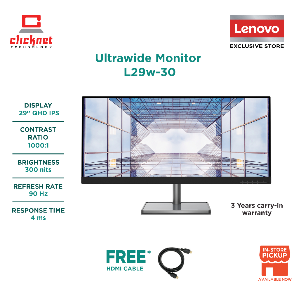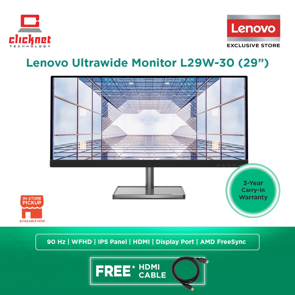 Lenovo 29" L29W-30 IPS FHD 90Hz 4ms AMD Freesync Build In Speaker Ergonomic Eyesafe Ultrawide Monitor (66E5GAC3MY)