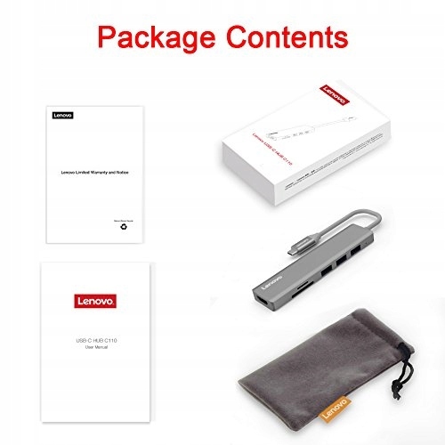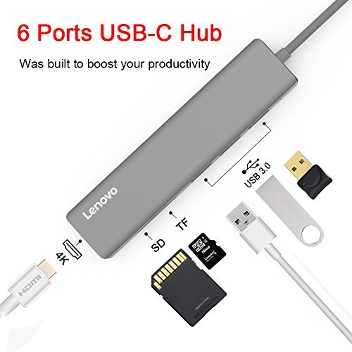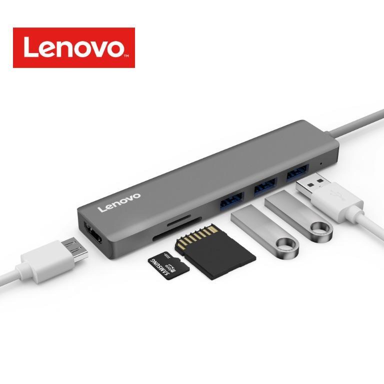 Lenovo 6-in-1 Hub C110 Type-C Adapter With 3 USB 3.0 Ports, USB-C, HDMI, SD/TF Card Reader