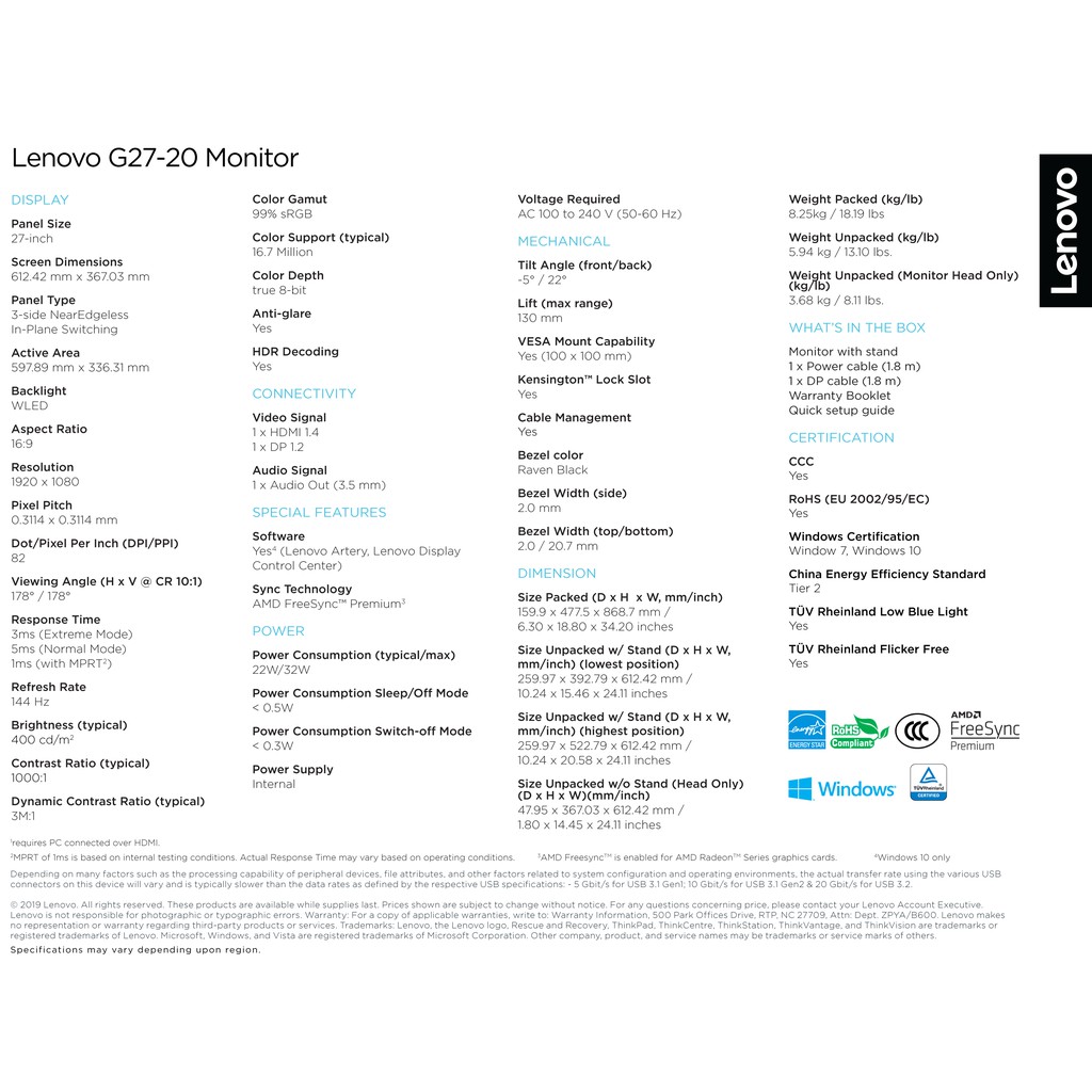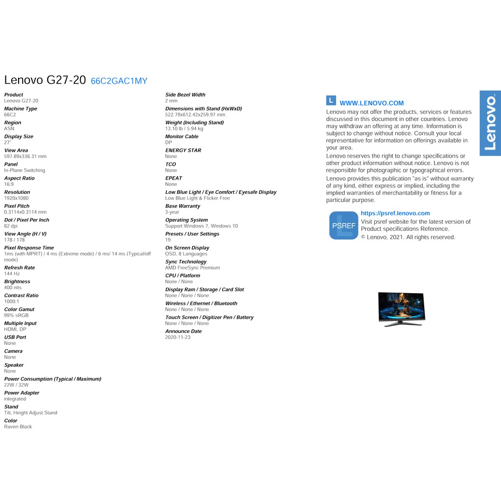 Lenovo G27-20 FHD Gaming Monitor (27") 66C2GAC1MY
