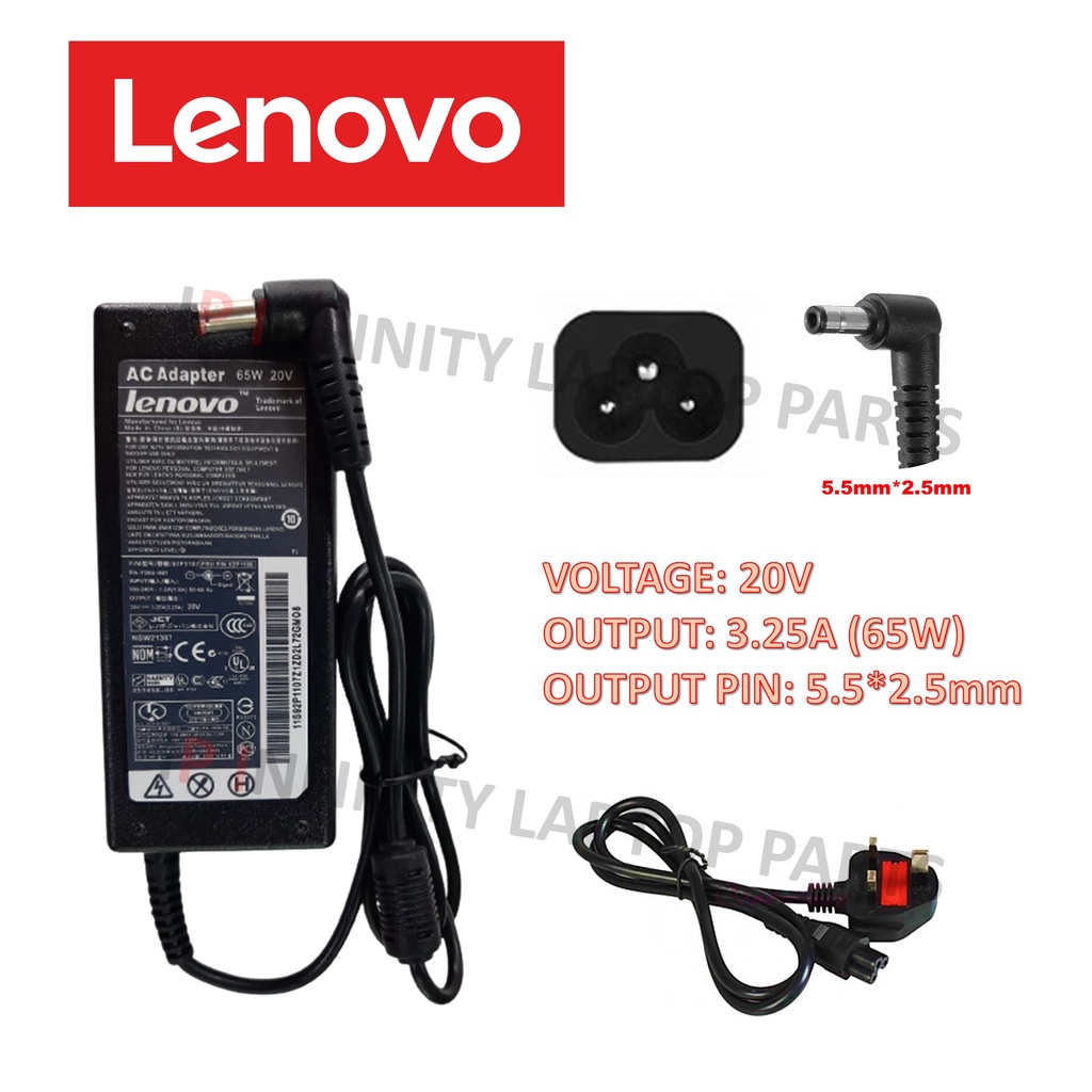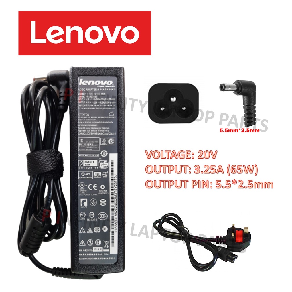 Lenovo G470 G480 G465 G455 G560 G570 Z460 Z580 20V 3.25A (65W) 5.5 x 2.5mm Notebook Charger Adaptor