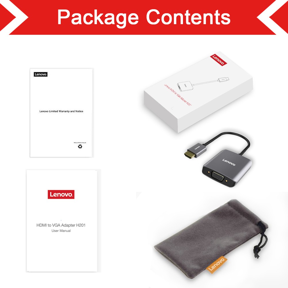 Lenovo H201 HDMI to VGA Adapter with Audio + Extra Power input