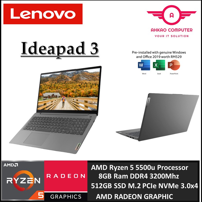 Lenovo IdeaPad 3 15ALC6 82KU01J1MJ 15.6'' FHD Laptop Arctic Grey ( Ryzen 5 5500U, 8GB, 512GB SSD, ATI, W11, HS )