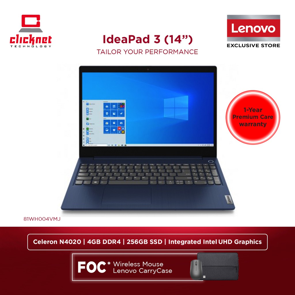 Lenovo IdeaPad 3 FHD Laptop 81WH004VMJ (14"/Intel Celeron N4020 4GB 256GB SSD W10-BLUE)