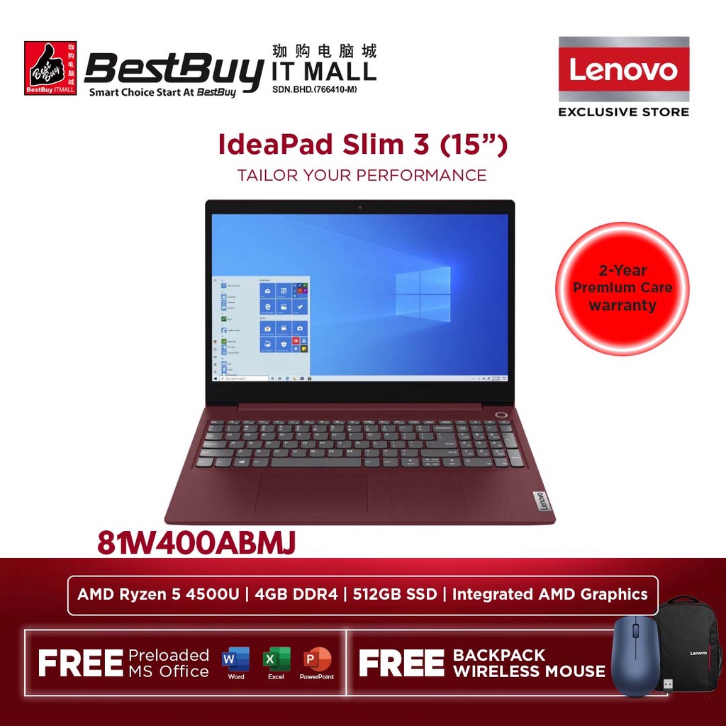 Lenovo IdeaPad 3 FHD Laptop - Cherry Red (15.6"/Ryzen 5 4500U 4GB 512GB SSD ATI W10 HS) 15ARE05 81W400ABMJ