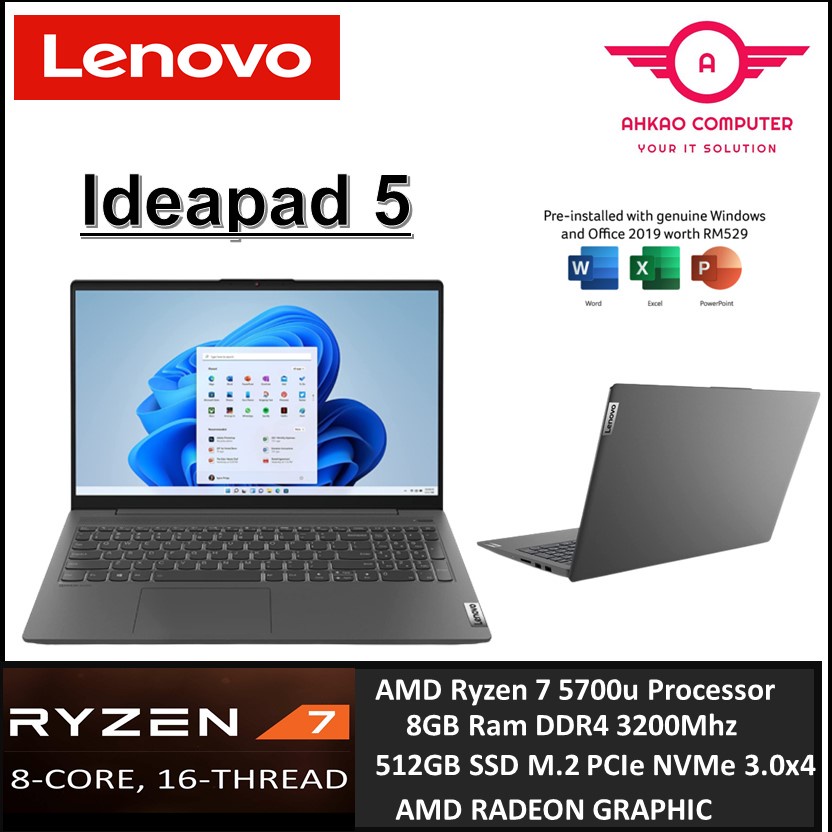Lenovo IdeaPad 5 15ALC05 82LN00RNMJ 15.6'' FHD Laptop Graphite Grey ( Ryzen 7 5700U, 8GB, 512GB SSD, ATI, W11, HS )
