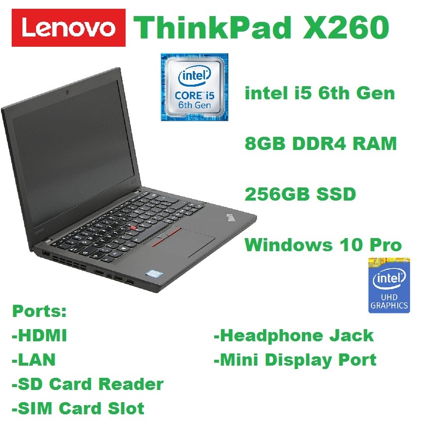 Lenovo ThinkPad X260 INTEL CORE i5-6200U 6TH GEN/ 8GB RAM/256GB SSD