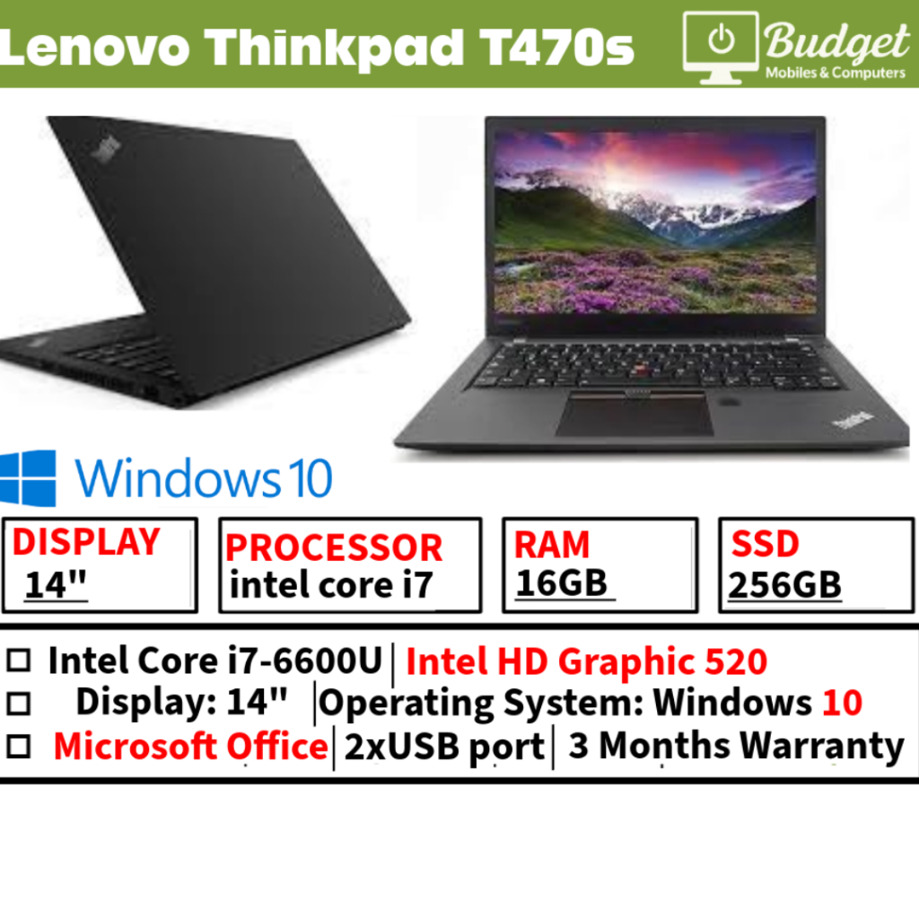 Lenovo Thinkpad T470s 14" Inch Intel i7 6th Gen | 20GB RAM 256GB SSD Sim Card - SUPPORT-WIN-10-PRO