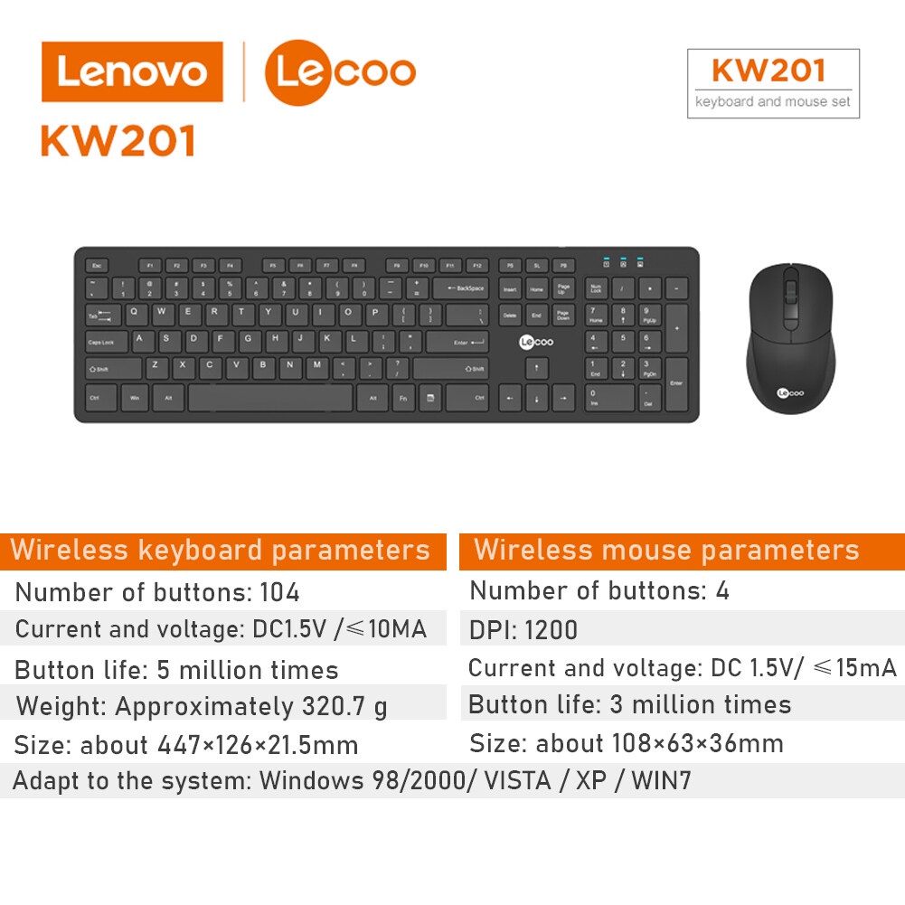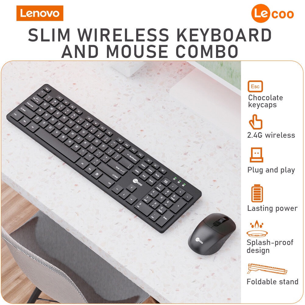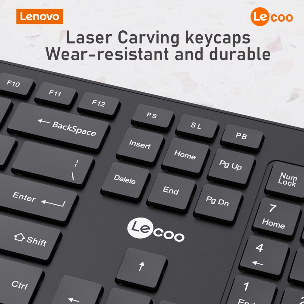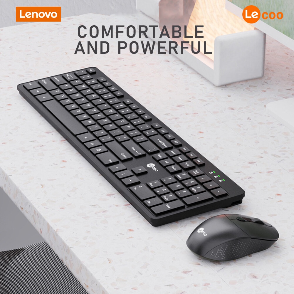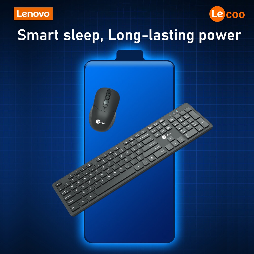 Lenovo Wireless Keyboard and Mouse Set Office Home Soft Tone Keyboard and Mouse Set Desktop Laptop Universal Ultra thin Design Lecoo KW201 Keyboard and Mouse Set