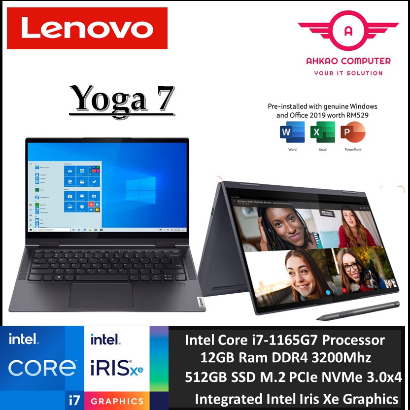Lenovo Yoga 7 14ITL5 82BH00PMMJ 14'' FHD Touch 2-In-1 Laptop Grey ( I7-1165G7, 12GB, 512GB SSD, Iris Xe, W11, HS )