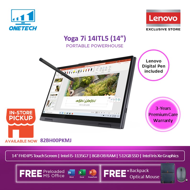 Lenovo Yoga 7i 14ITL5 (14" FHD IPS Touch/512GB/Intel Iris Xe/2-Yr) 82BH00PJMJ / 82BH00PKMJ / 82BH00PLMJ / 82BH00PMMJ