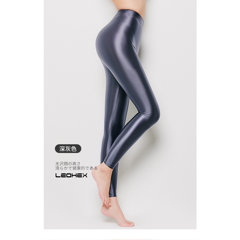 Leohex Thin Glossy Oily Silky Bodybuilding Leggings Women Outer Wear Glossy Ankle-Length Elastic Color Leggings