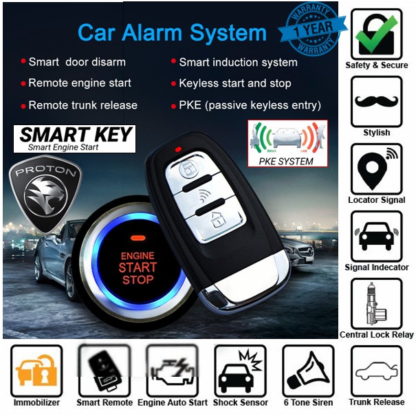 Leon Proton Neo Satria Fully Keyless Entry PKE Intelligent Smart Alarm System & Push Start & Engine Auto Start Module