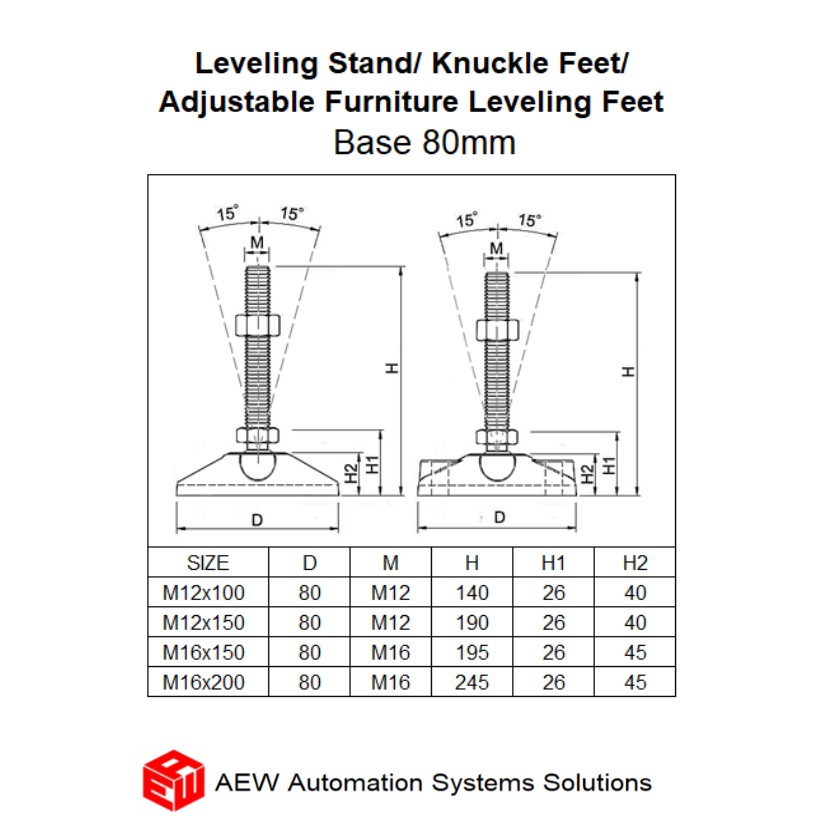 Leveling Stand/ Knuckle Feet/ Adjustable Furniture Leveling Feet Base 80mm for Profile/ Table/ Rack