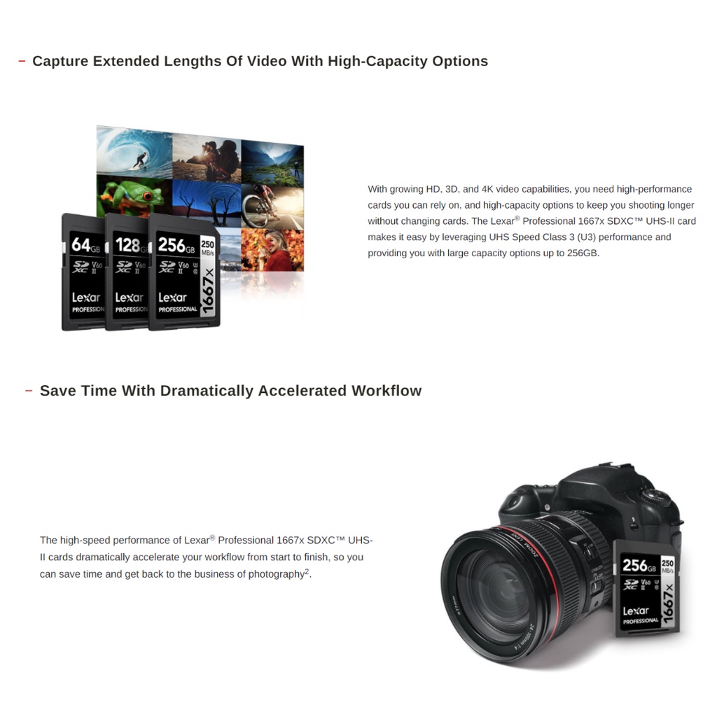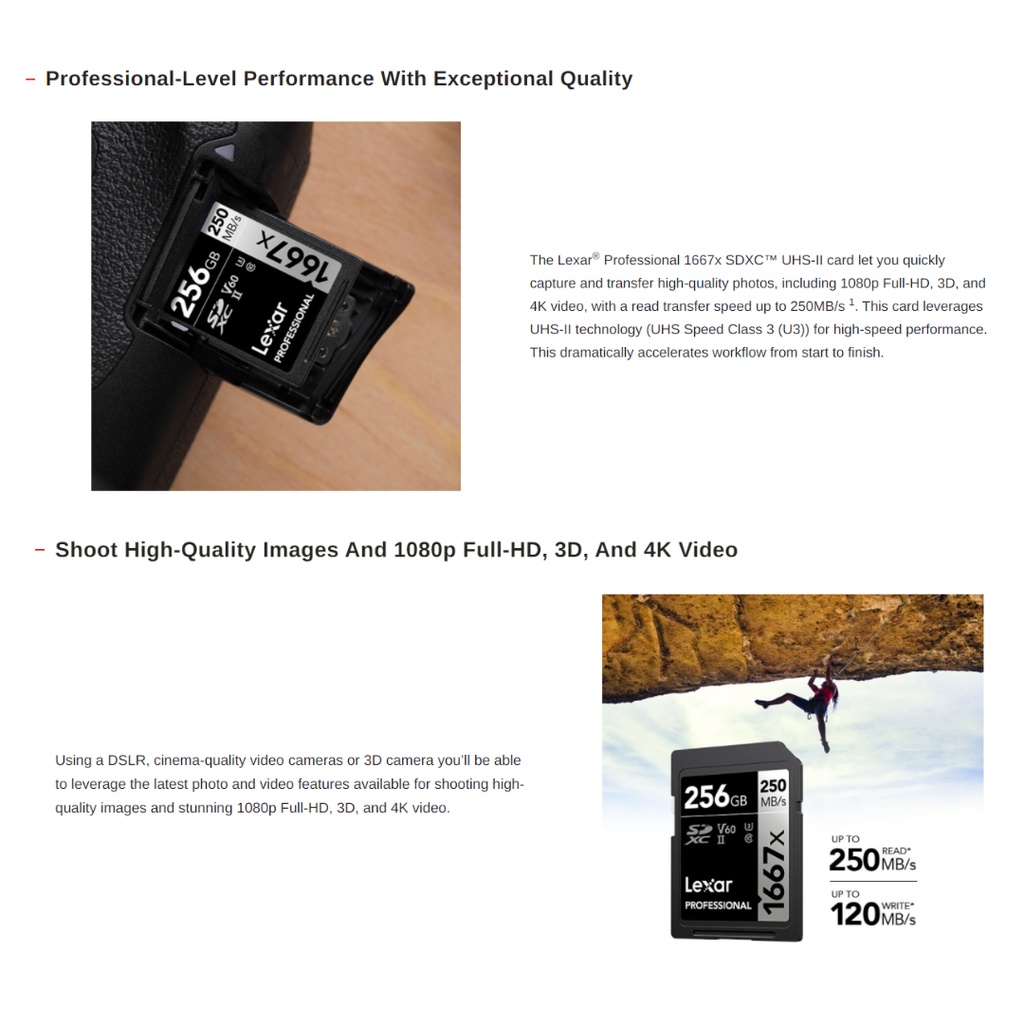 Lexar 64GB 128GB 256GB Professional 1667x SDXC UHS-II U3 V60 250MB/s 120 MB/s Memory Card