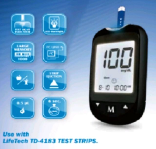 LifeTech TD-4183 Blood Glucose Monitor + 25 pcs Test Strips +25 safety lancet.